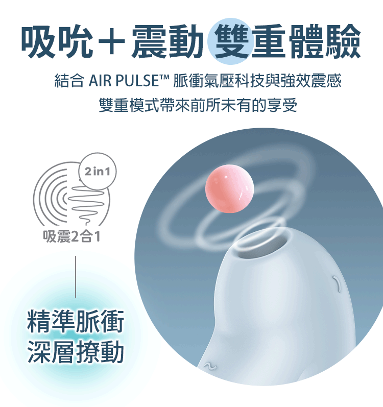 集結 吸吮 + 震動 於一身,帶來獨特的 2 in 1 快感體驗。