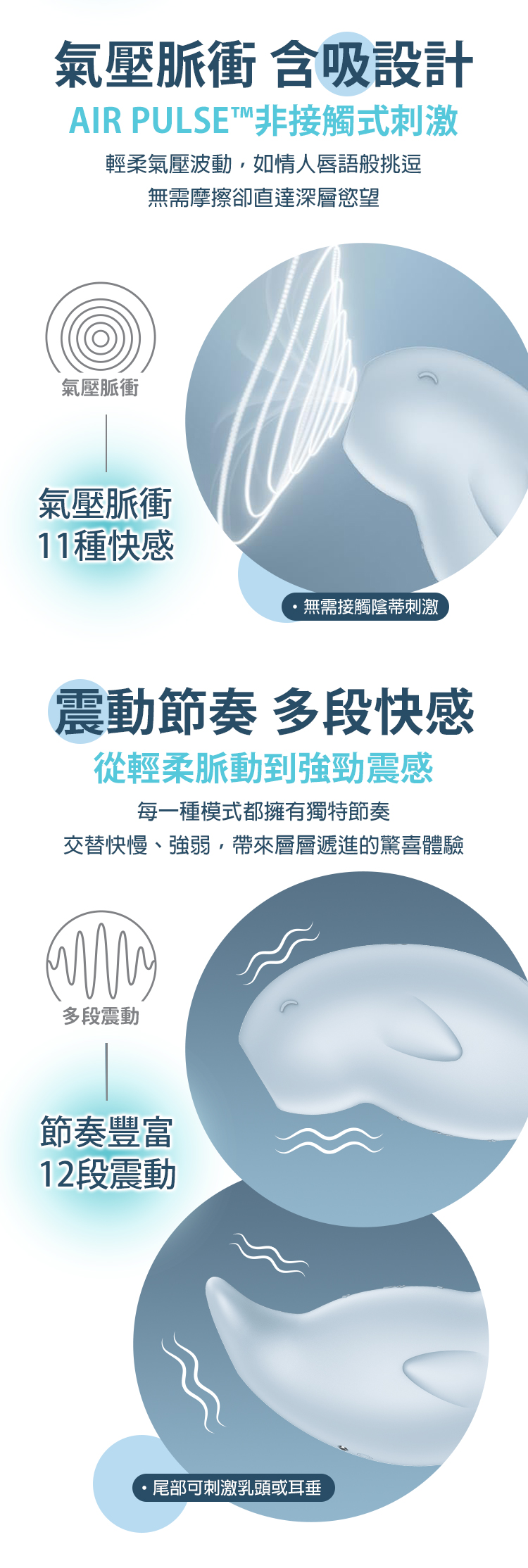 11 種輕柔氣壓波動,非接觸式刺激,細膩而不刺激